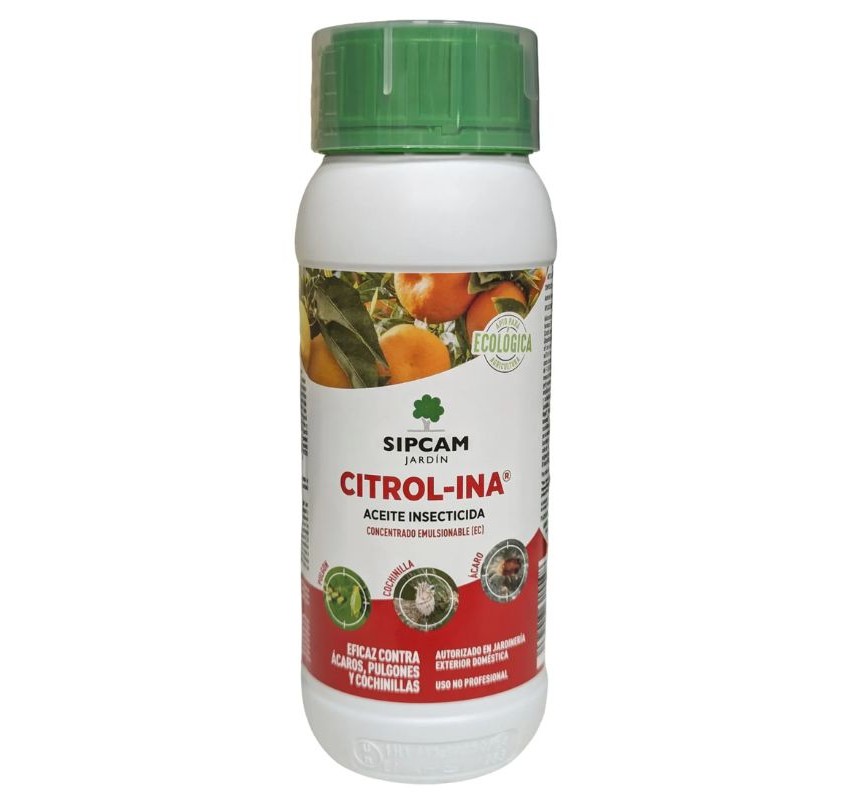 Citrol-ina® Aceite Insecticida es un insecticida de acción física formulado a base de aceite de parafina en concentrado emulsionable (EC), indicado para el control de plagas habituales en jardinería doméstica. Actúa por contacto, formando una película que provoca la asfixia de los insectos, reduciendo el riesgo de resistencias.